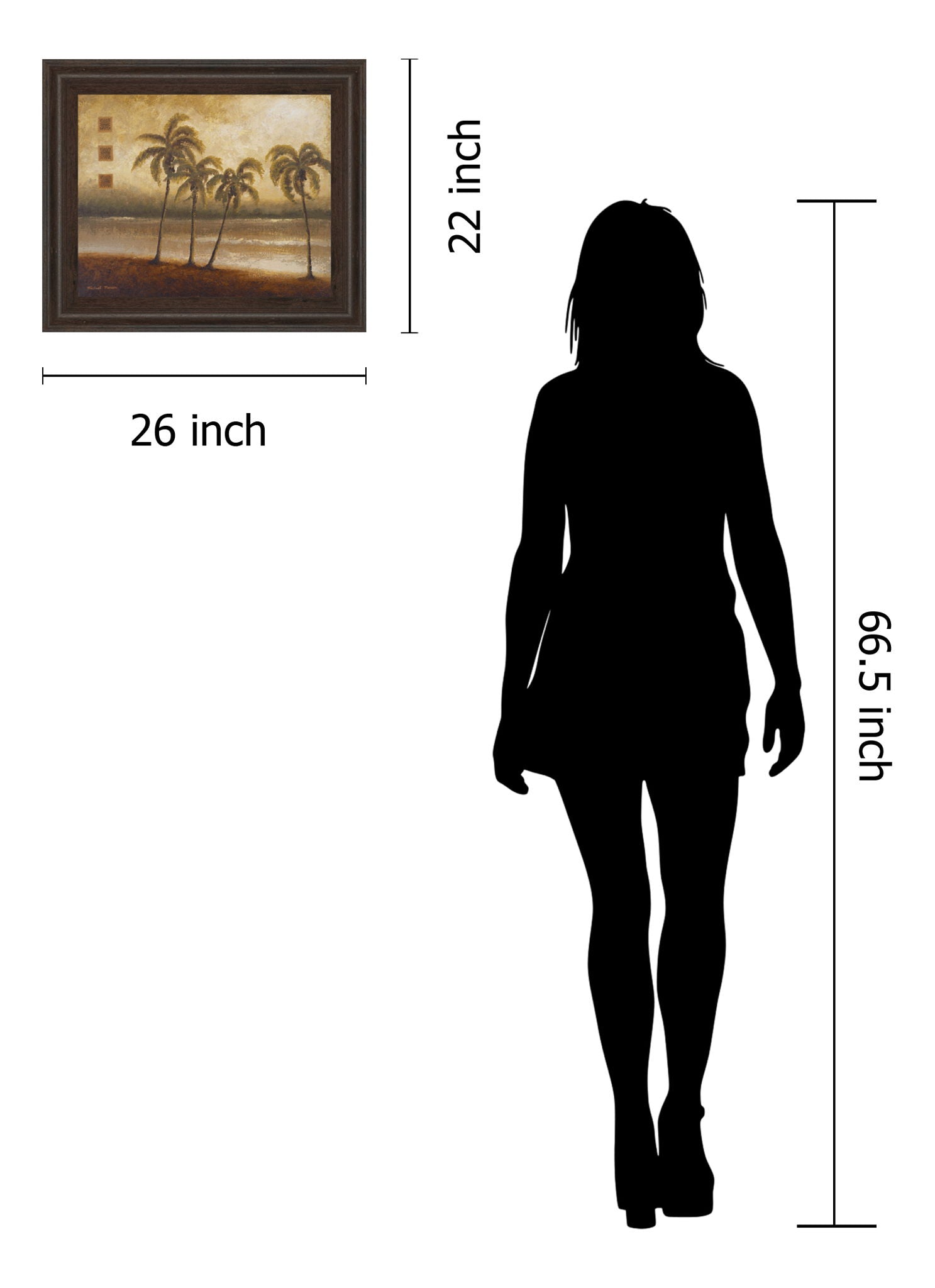 Step into a tranquil tropical scene with this captivating framed artwork that evokes the calm of a sunset by the water. Softly painted palm trees sway gently against a backdrop of warm earth tones, inviting a sense of peace and relaxation into any room. The rich cinnamon mocha frame complements the natural hues, adding an elegant touch while premium real glass preserves the artwork's texture and depth. Ideal for living rooms or offices, this piece transforms your space into a soothing retreat where the beauty of nature and quiet moments come alive.