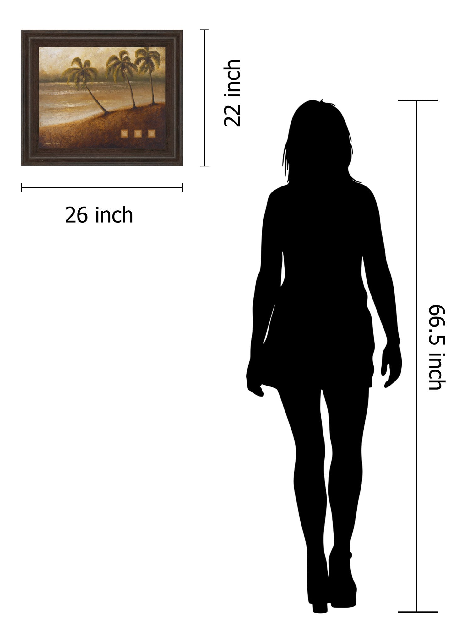 Step into a tranquil coastal retreat with Tropical Escape II, where three palm trees sway gently over a serene shoreline painted in warm cinnamon mocha hues. This contemporary graphic art piece uses textured brushstrokes to evoke a sense of calm and relaxation, capturing the essence of a peaceful tropical escape. Enhanced by a rich 3-inch wide frame and premium real glass, the artwork's earthy tones and subtle details come to life, making it a refined addition to any living room, office, or bedroom. Crafted in the USA and ready to hang, this framed print invites nature's soothing charm into your space.