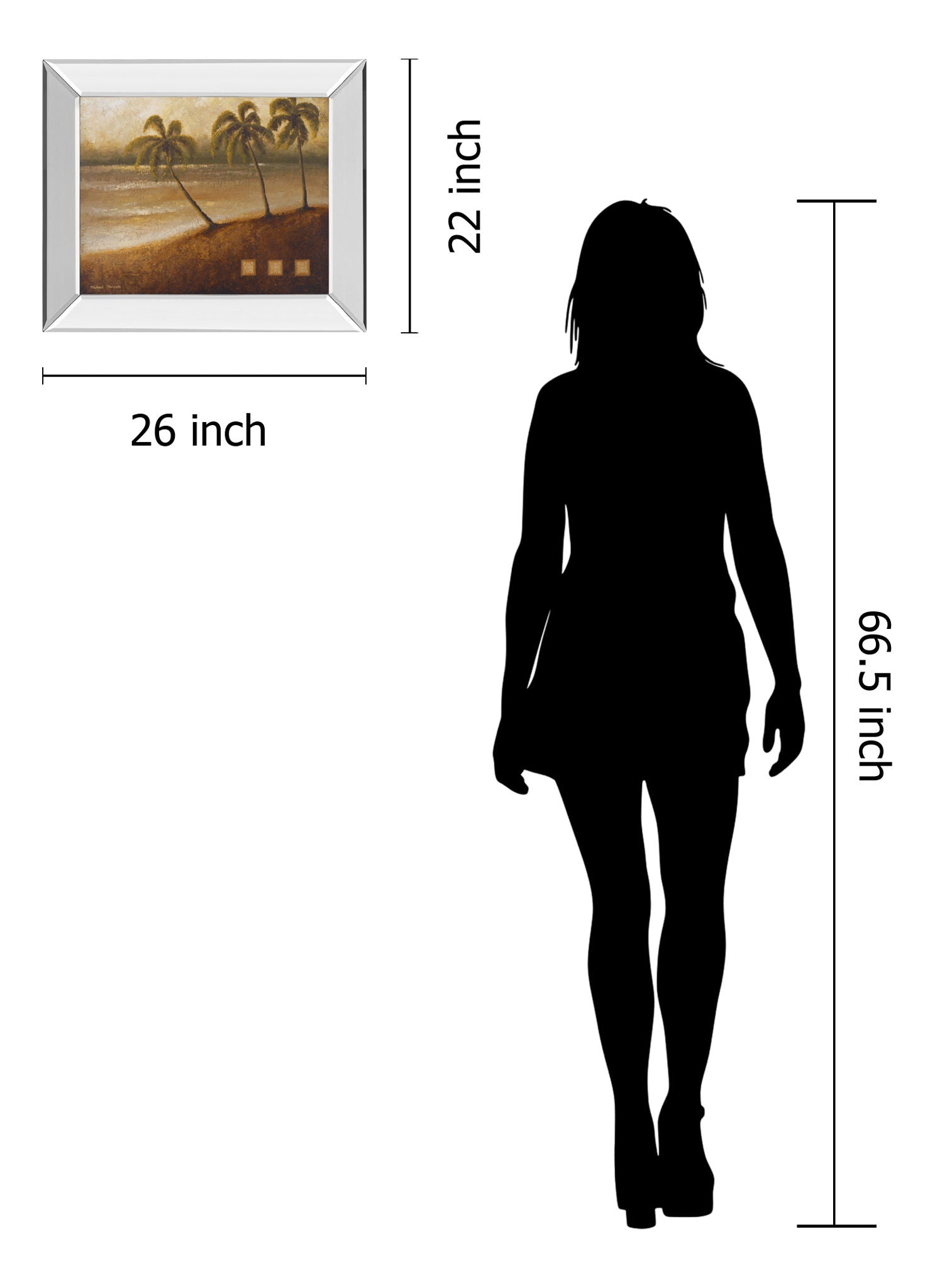 Step into a world of calm with this Tropical Serenity framed wall art, where three palm trees sway gently over a tranquil shore rendered in warm, earthy hues. The artwork’s textured brushstrokes evoke a peaceful, natural ambiance, inviting you to unwind and escape the everyday. Encased in a sleek mirrored frame, the piece reflects light beautifully, adding a touch of modern elegance to your living room, bedroom, or office. Crafted with premium real glass to protect the vibrant graphic print, this horizontal botanical scene brings a sophisticated yet soothing presence to any space, transforming it into a serene retreat inspired by nature’s quiet beauty.