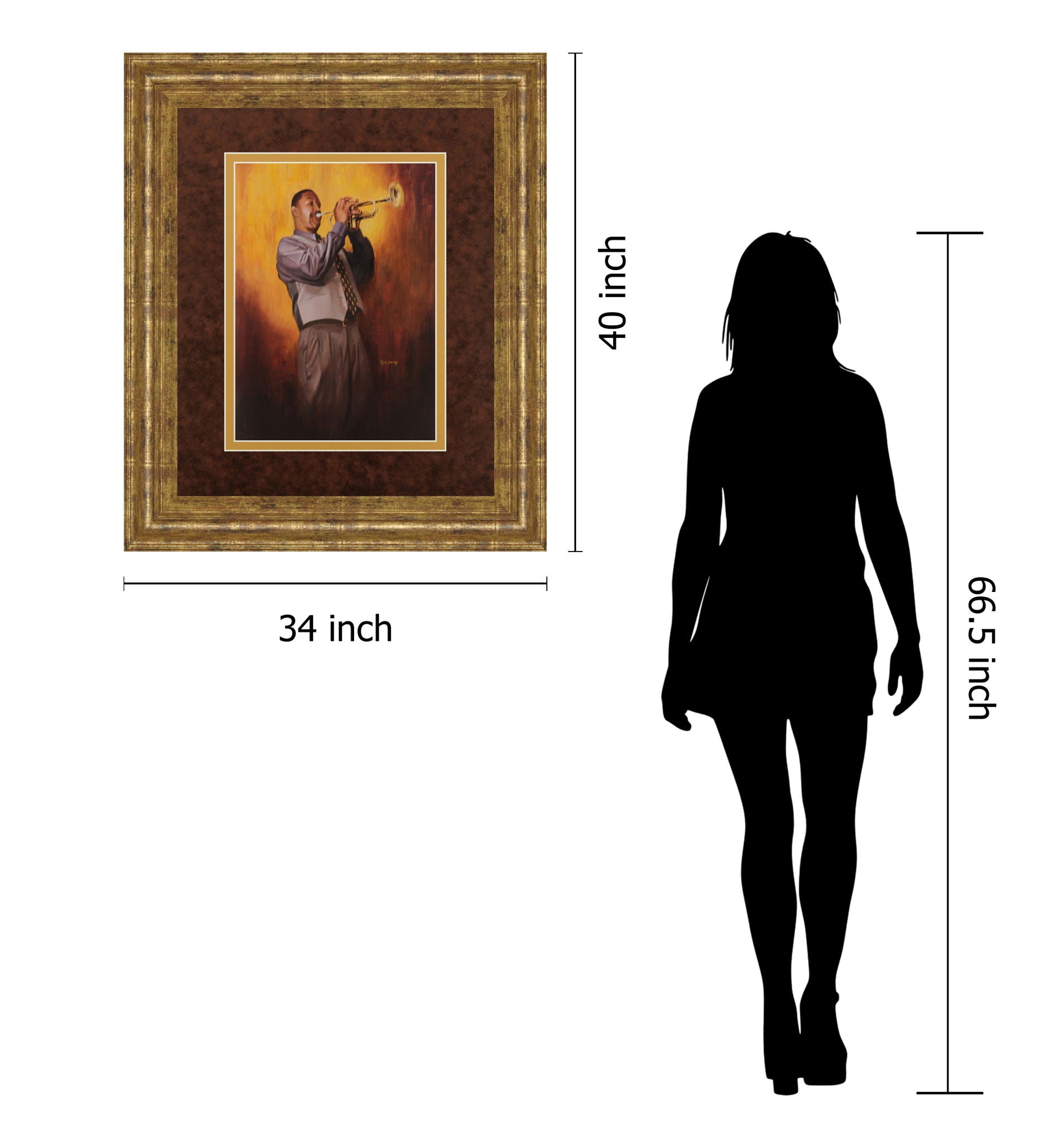 Experience the vibrant spirit of jazz with this captivating portrayal of a trumpeter lost in his music. Bathed in warm golden hues, the artwork draws you into a moment of soulful expression and artistic passion. Set within a richly gilded frame and layered with double matting, this piece offers a gallery-quality presentation that enhances every detail and color nuance. Ideal for living rooms, offices, or music spaces, it brings a sophisticated energy and heartfelt rhythm to your décor, inviting you to feel the music in every glance.