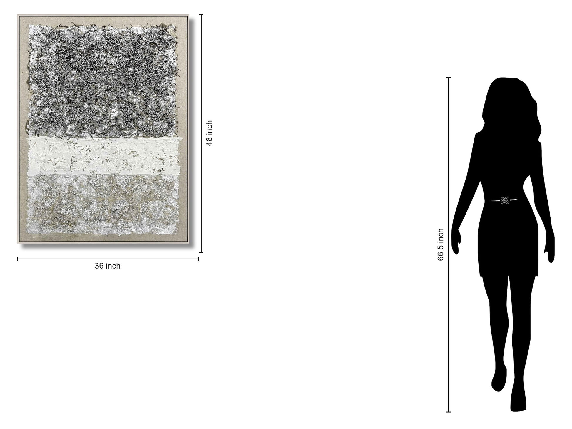 Textured Metallic Strata is a captivating hand-painted mixed media piece that brings depth and texture to any space. Featuring a unique 3D layered design, this artwork combines metallic silver and champagne tones with intricate brushwork on a durable canvas base. Fully framed and ready to display, it adds a sophisticated contemporary touch to living rooms, offices, or bedrooms. Each purchase supports a meaningful cause by donating a meal to a hungry American child, making this art both beautiful and impactful.