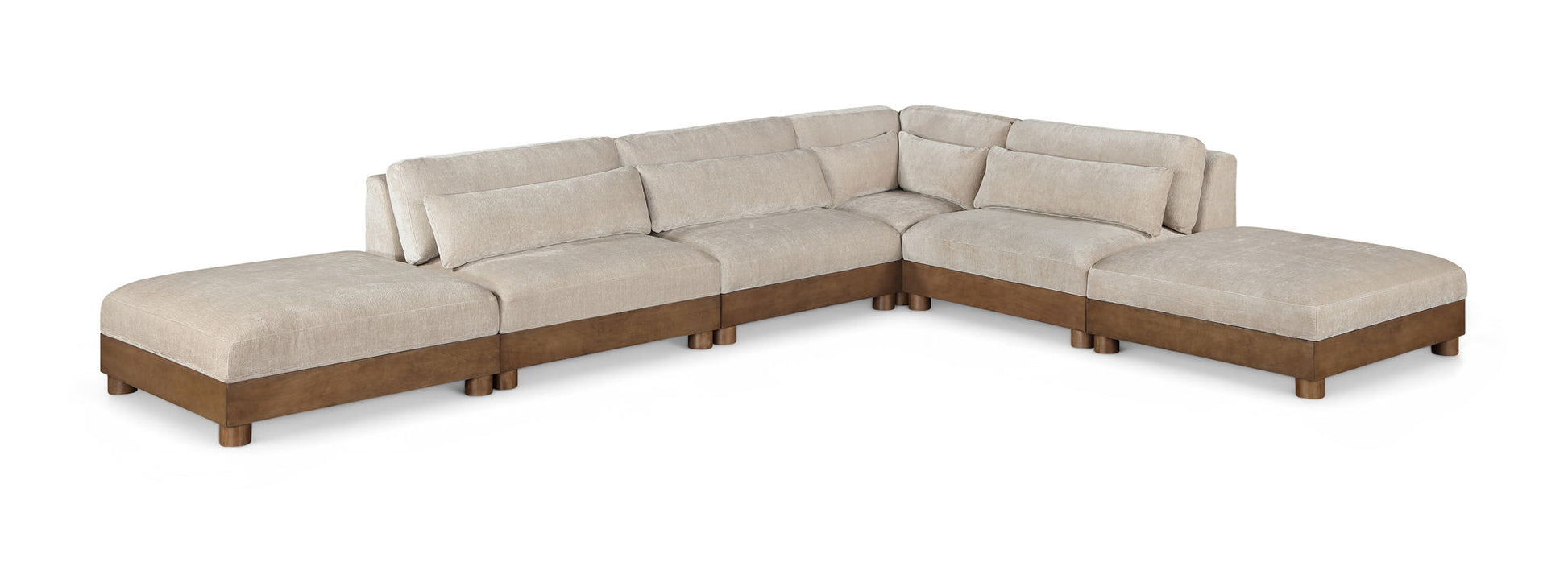 Turin - Chenille Fabric Upholstered 7 Piece Modular Sectional - Taupe / Painted Brown