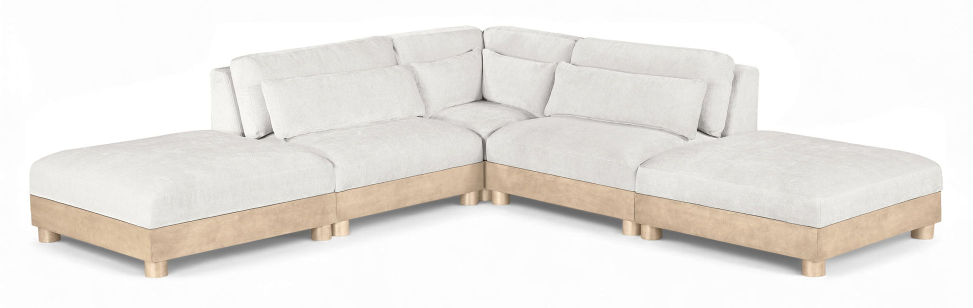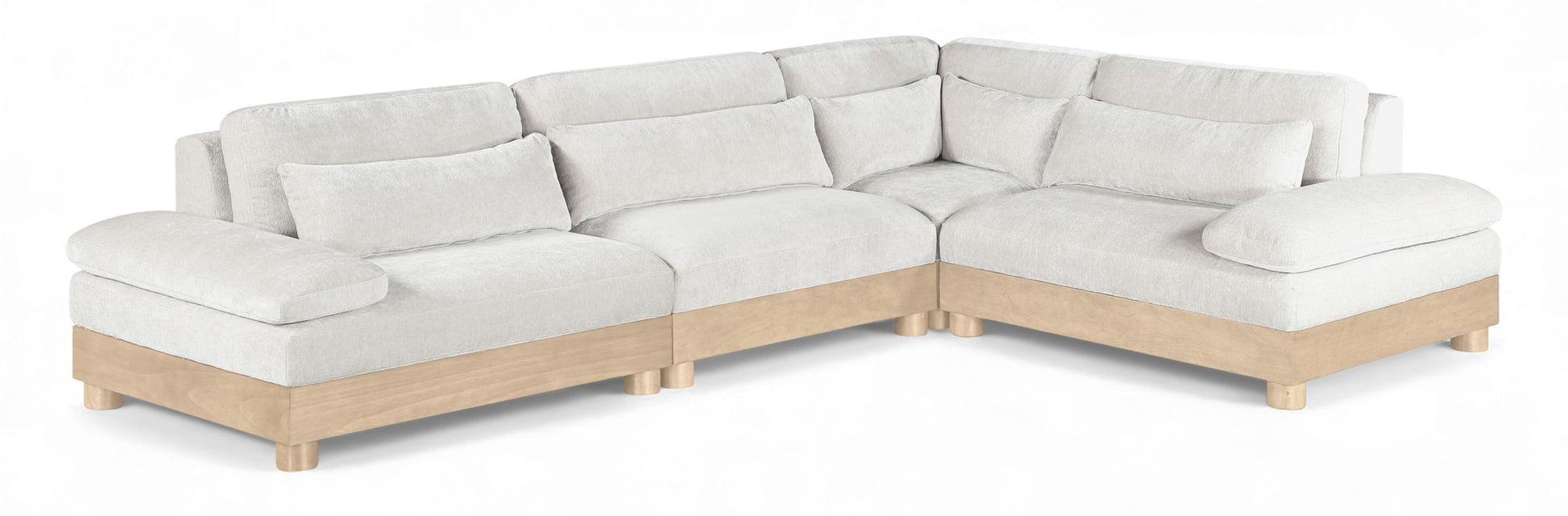 Turin - Chenille Fabric Upholstered 4 Piece Modular Sofa - Cream / Painted Natural