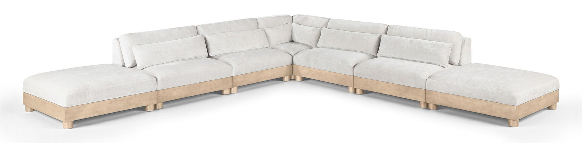 Turin - Chenille Fabric Upholstered 7 Piece Modular Sectional - Cream / Painted Natural
