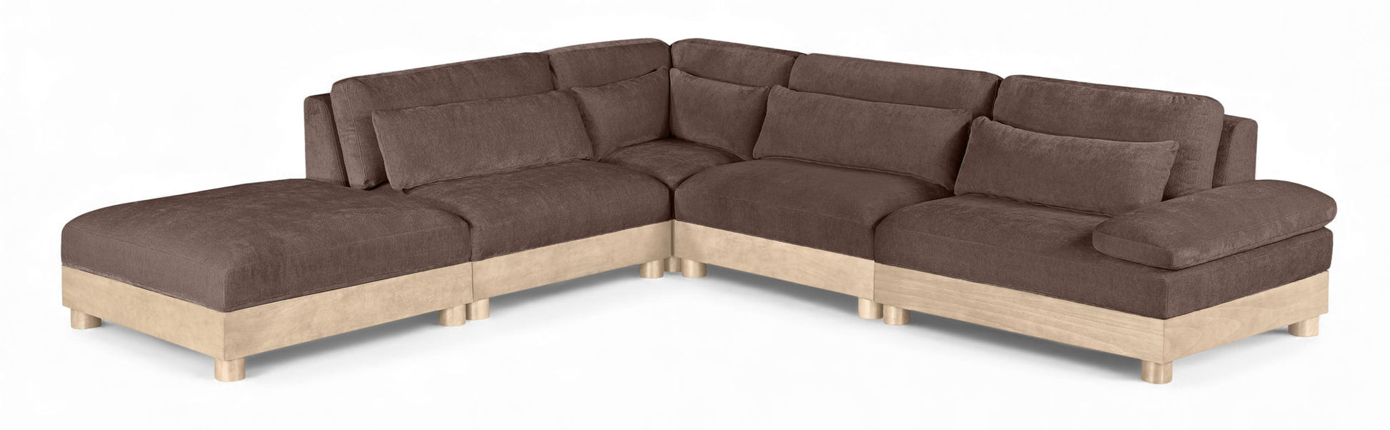 Turin - Chenille Fabric Upholstered 4 Piece Modular Sofa - Brown / Painted Natural