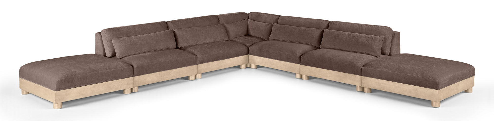 Turin - Chenille Fabric Upholstered 7 Piece Modular Sectional - Brown / Painted Natural