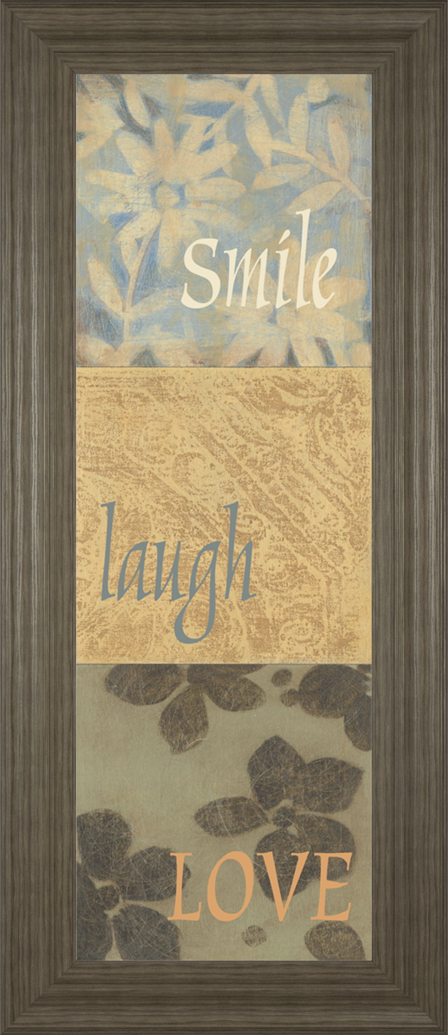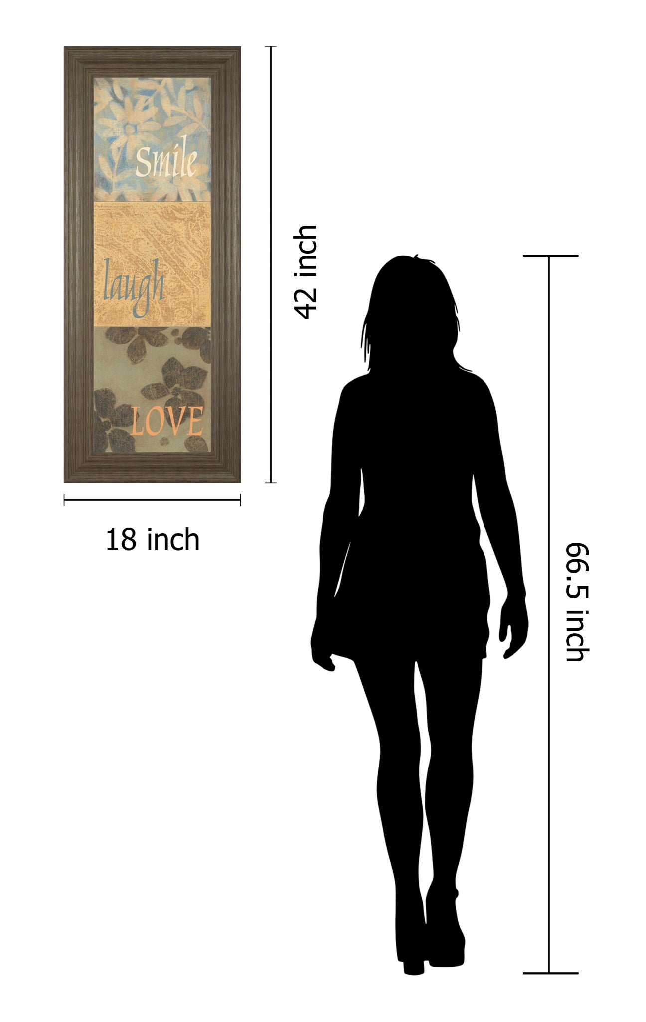 Invite a daily dose of positivity into your home or office with this beautifully framed wall art, featuring the inspiring words “Smile,” “Laugh,” and “Love.” Set against a harmonious blend of soft blues, warm beige, and gentle earth tones, the artwork captures a tranquil yet uplifting mood. The transitional style is enhanced by a sophisticated tranquil ash frame and protected by premium real glass, ensuring the vibrant graphic art remains vivid and pristine. Perfectly sized for vertical display, this piece brings warmth, encouragement, and a touch of elegance to any living room, bedroom, or workspace, crafted with expert care in the USA.