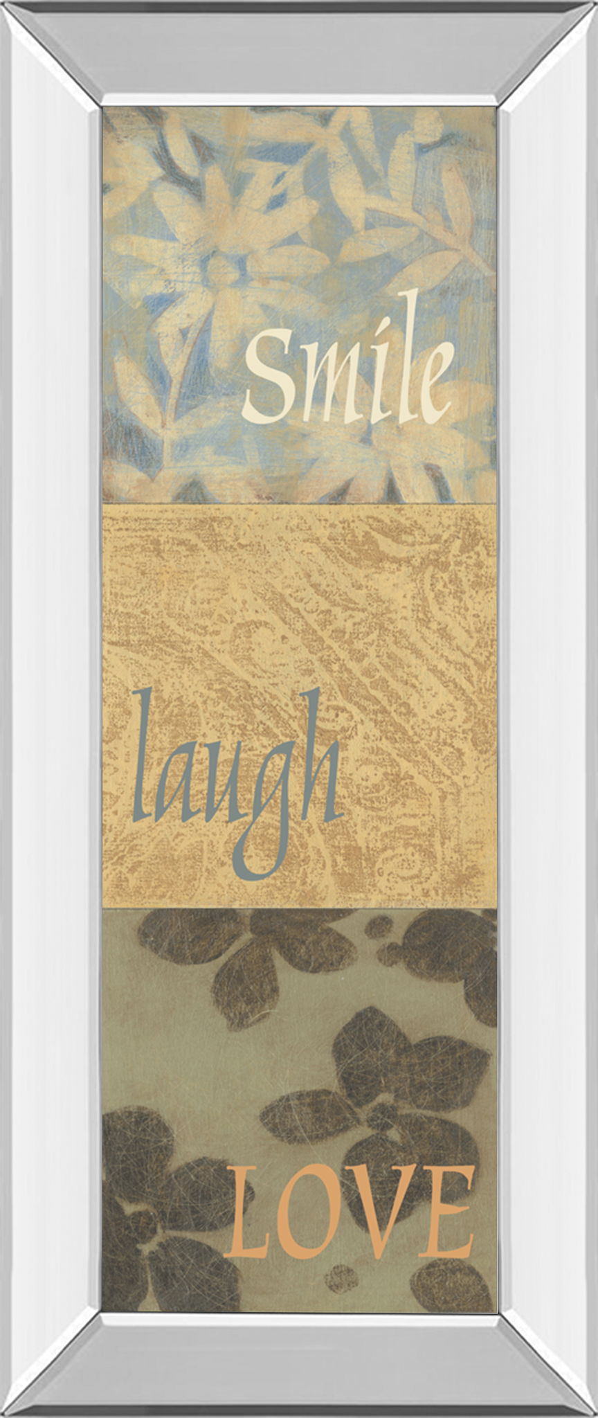 Transform your living space with this uplifting framed wall art that beautifully combines inspiration and elegance. Featuring the encouraging words “Smile,” “Laugh,” and “Love” set against a softly textured, botanical-inspired background, this piece radiates warmth and positivity. The sleek 2.5-inch mirrored frame adds a subtle touch of luxury and depth, enhancing the vibrant colors and intricate details of the artwork. Crafted with premium real glass and ready to hang with durable hardware, it fits seamlessly into transitional décor styles, making it perfect for living rooms, offices, or hallways. Expertly made in the USA, this timeless piece invites joy and motivation into any environment.