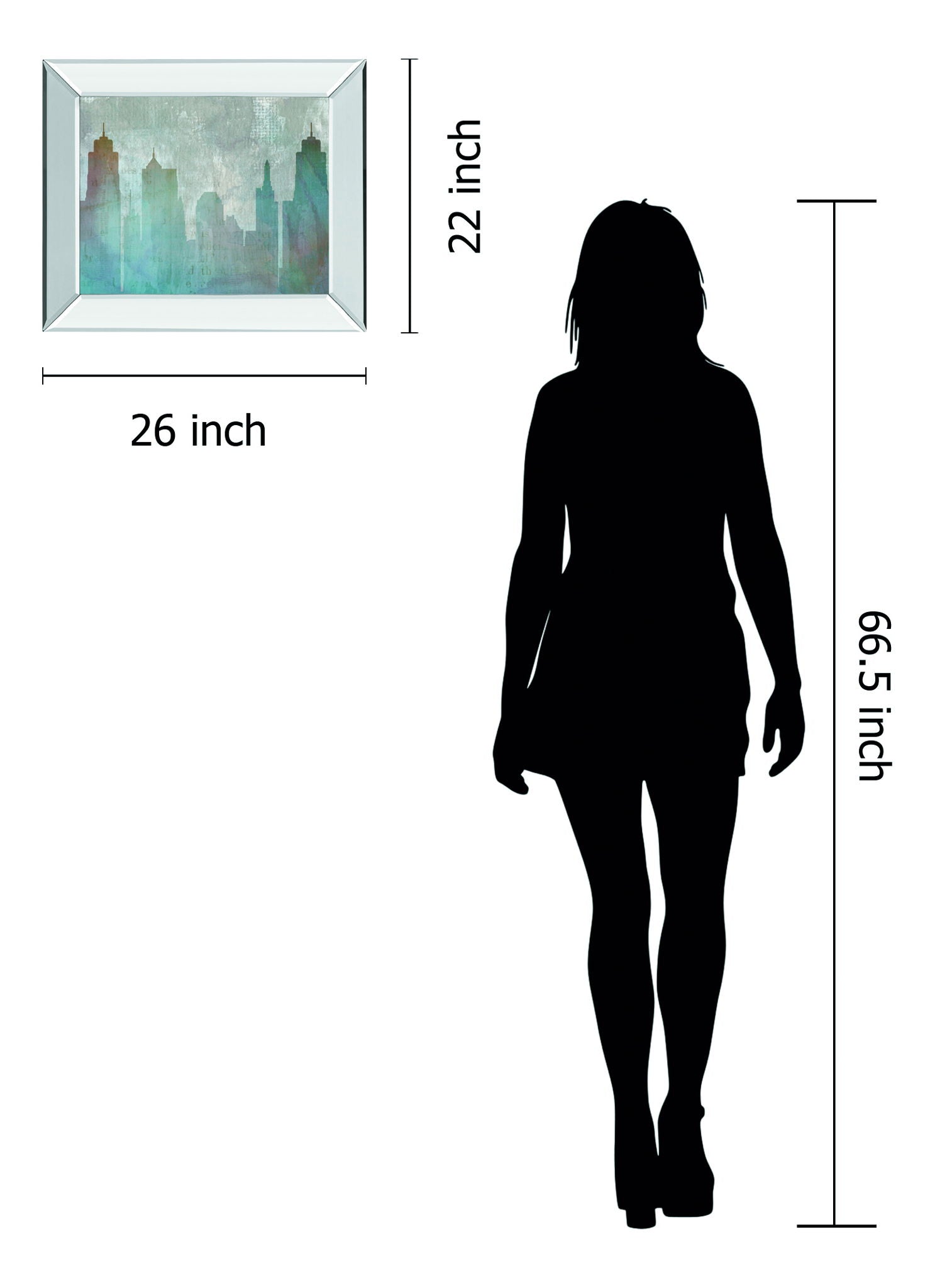 Step into a tranquil urban dream with this captivating cityscape that blends architectural silhouettes with soft, muted hues of blue, green, and gray. The sleek mirrored frame not only adds a touch of modern elegance but also reflects light to create a dynamic visual experience that changes with your environment. Perfect for living rooms or offices, this piece invites calm and sophistication, transforming any space into a serene urban retreat where contemporary style meets subtle artistry.