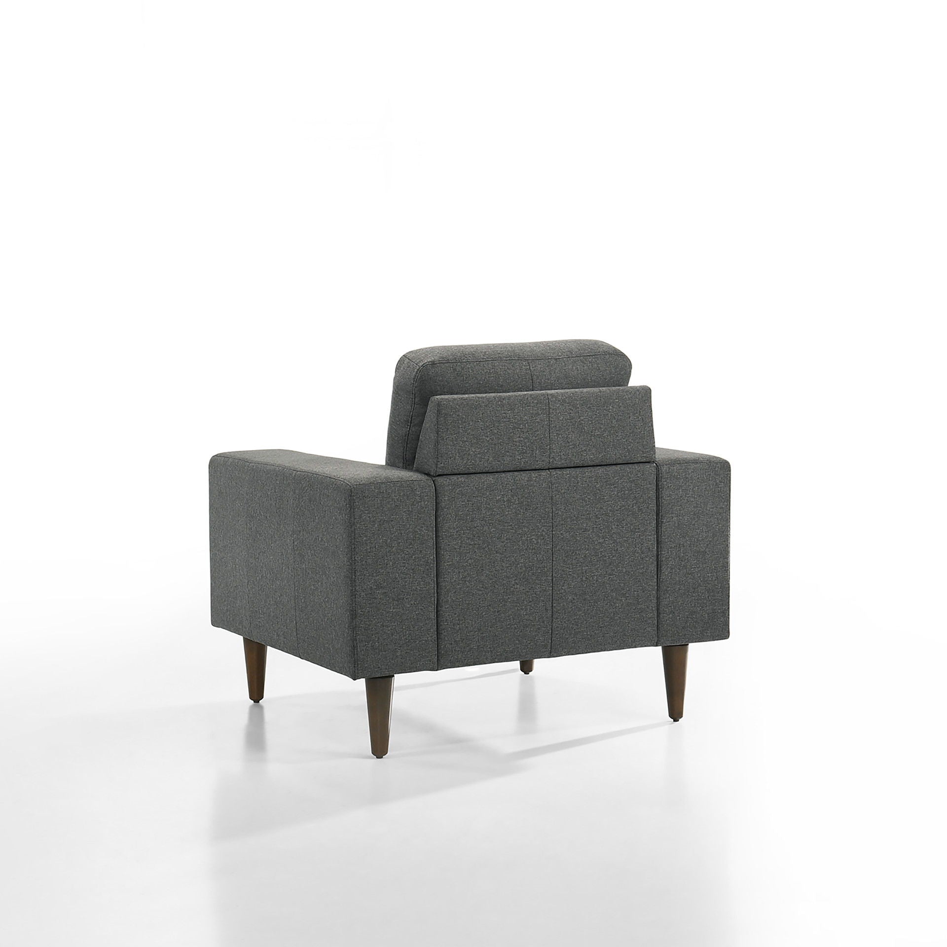• Transitional Style: Extra wide track arms, tight back cushions with tailored center stitch and wood legs provide the versatile style for your living room chair.