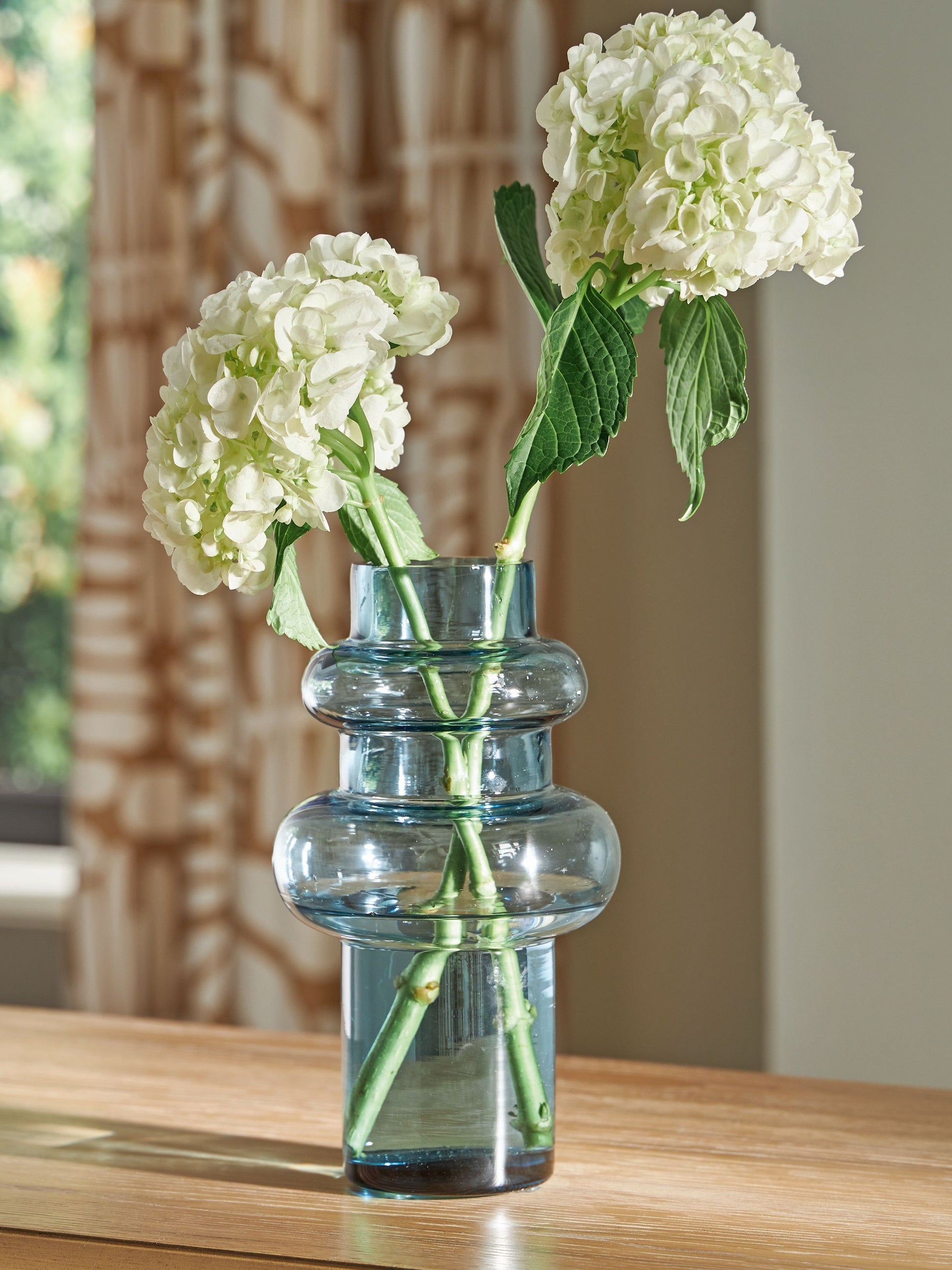 This contemporary vase is anything but ordinary. Displayed on its own or with faux greenery, the statement-making accent—crafted from blown glass in a blue hue—rounds out your modern decor beautifully.