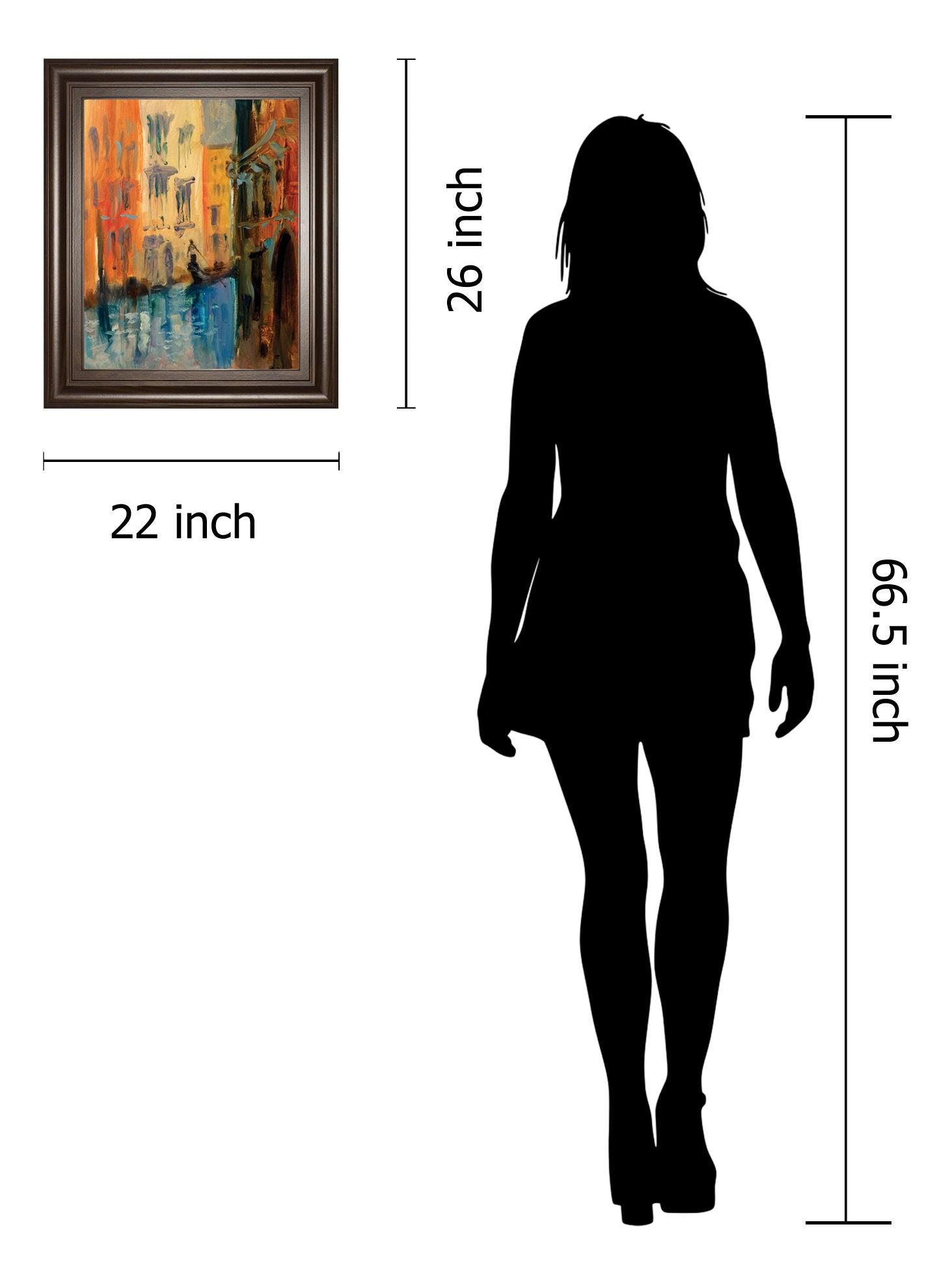 Step into the enchanting waterways of Venice with this captivating oil painting, where warm oranges and cool blues blend seamlessly to evoke the city's timeless beauty. The scene captures a gondolier navigating a serene canal, framed by historic architecture rendered in expressive brushstrokes that invite you to linger on every detail. Housed in a rich dark chocolate frame, this piece brings a sophisticated touch of classic European charm to any living room or bedroom, transforming your space into a tranquil retreat filled with artistic elegance and romantic allure.