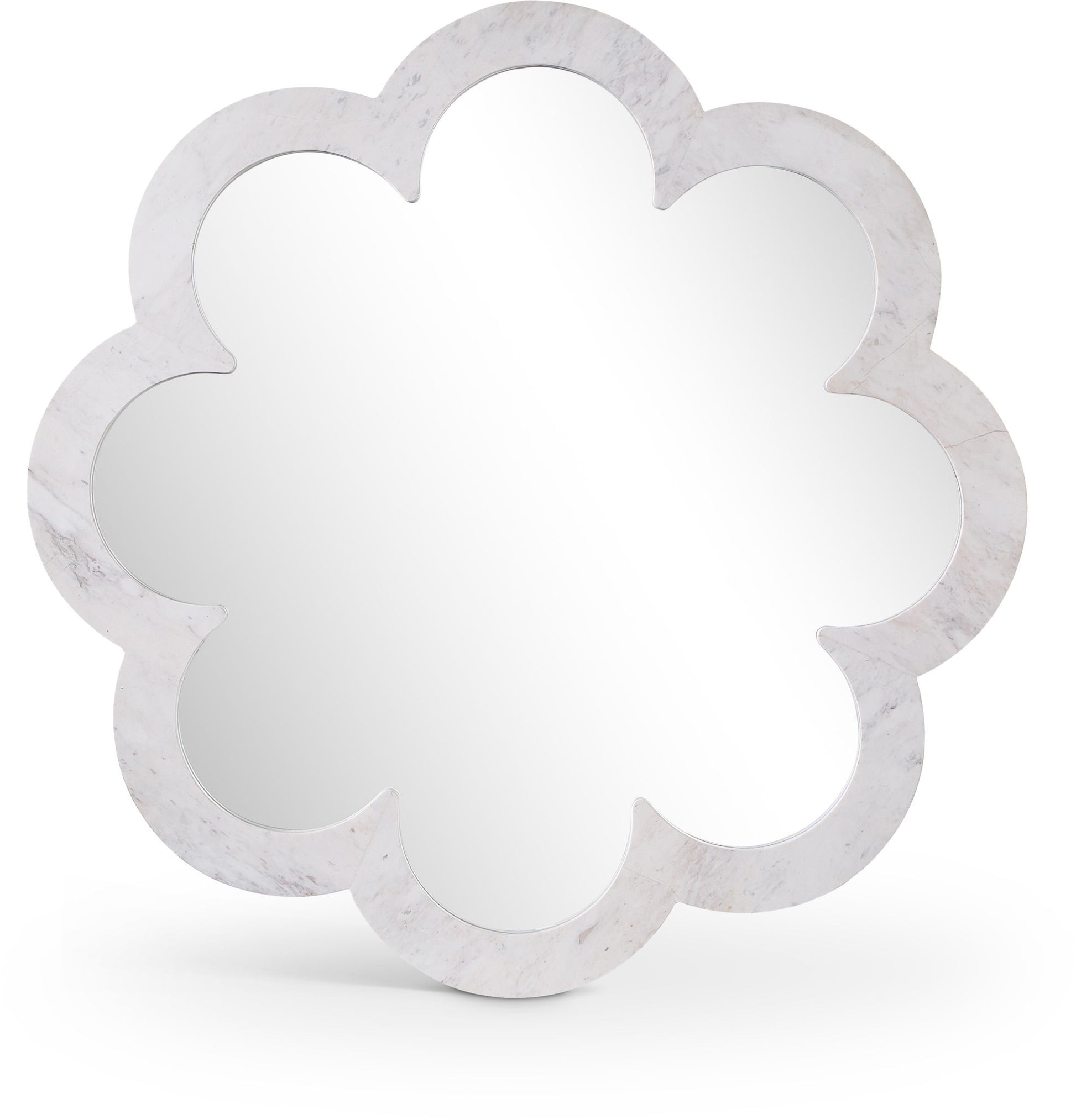Bold flower-shaped marble and a striking hue make the Vicenza mirror a captivating focal point. Sculpted from genuine marble, its playful silhouette brings a touch of whimsy while maintaining an upscale vibe. Perfect for adding texture and elegance to any wall, this mirror doubles as a piece of art.