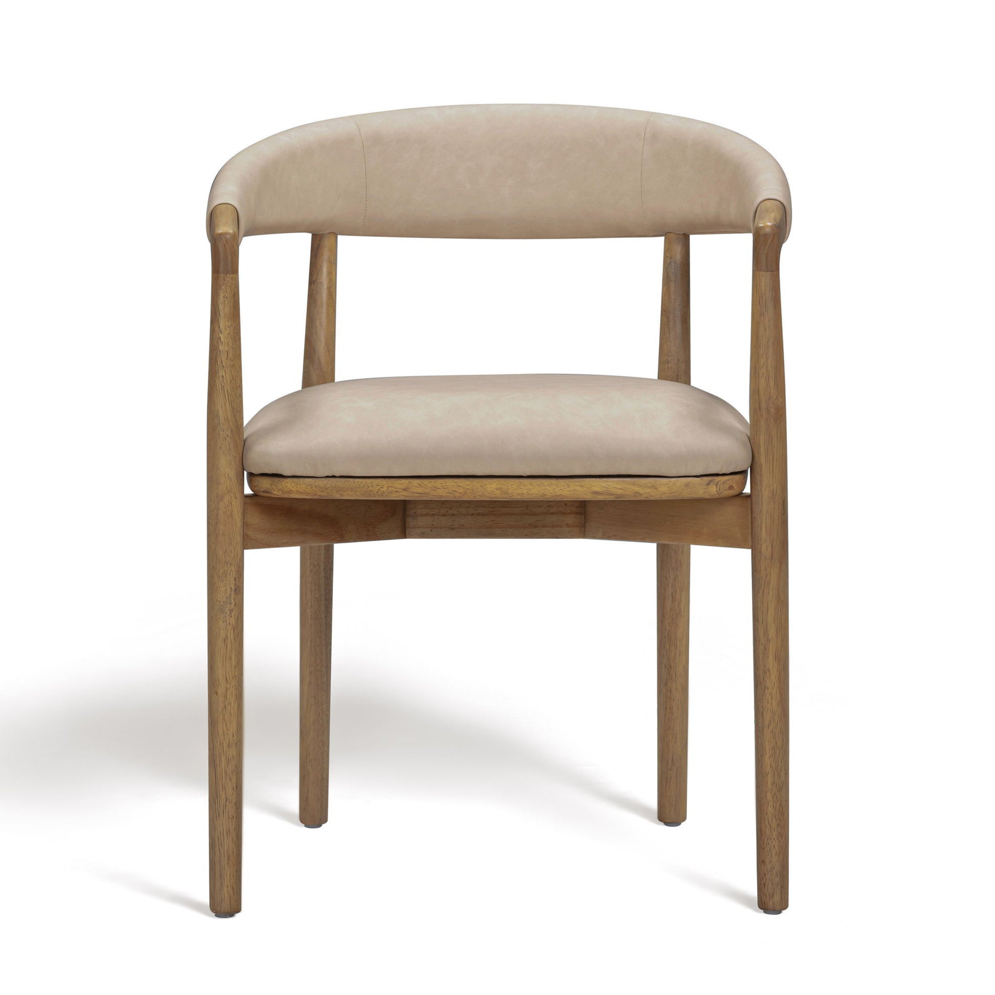 Sculpted with a tall, shelter-style back and a solid wood frame, the Vina Dining Chair blends comfort with striking form. Upholstered in wipe-clean vegan leather, it's built for high-traffic households yet feels refined, with supportive seating that invites lingering around the table.