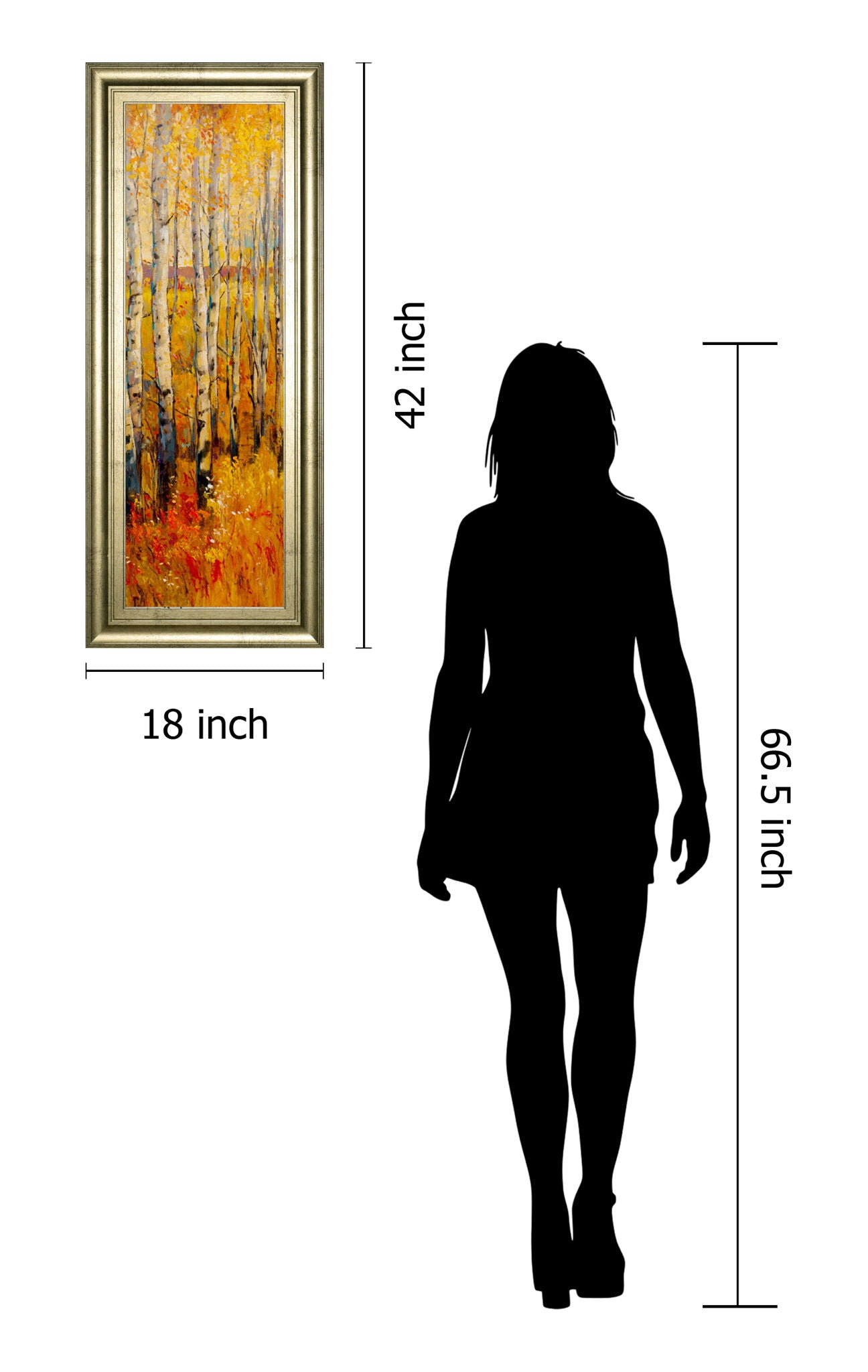 Step into a golden autumn forest with this captivating artwork that celebrates the vibrant spirit of fall. The scene bursts with warm yellows, fiery oranges, and subtle reds, evoking the peaceful beauty of birch trees in their seasonal splendor. Housed in a crisp chardonnay frame with premium real glass, this mixed media piece blends expert craftsmanship and contemporary style, making it a striking focal point for any living room, bedroom, or office. Ready to hang and proudly made in the USA, it brings the serene energy of nature indoors, transforming your space with the rich colors and textures of a vivid birch grove.