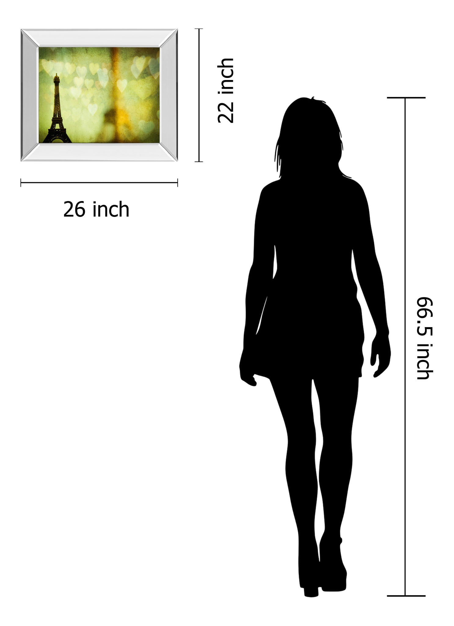 Step into a world of romance with this captivating piece that features the iconic silhouette of the Eiffel Tower set against a dreamy backdrop of softly glowing heart shapes. The mirrored frame enhances the light and depth, creating a sophisticated ambiance that complements any living room, bedroom, or office. Crafted with premium real glass and ready to hang, this photographic print blends transitional style with modern elegance, making it a perfect addition to your décor that evokes love and charm.