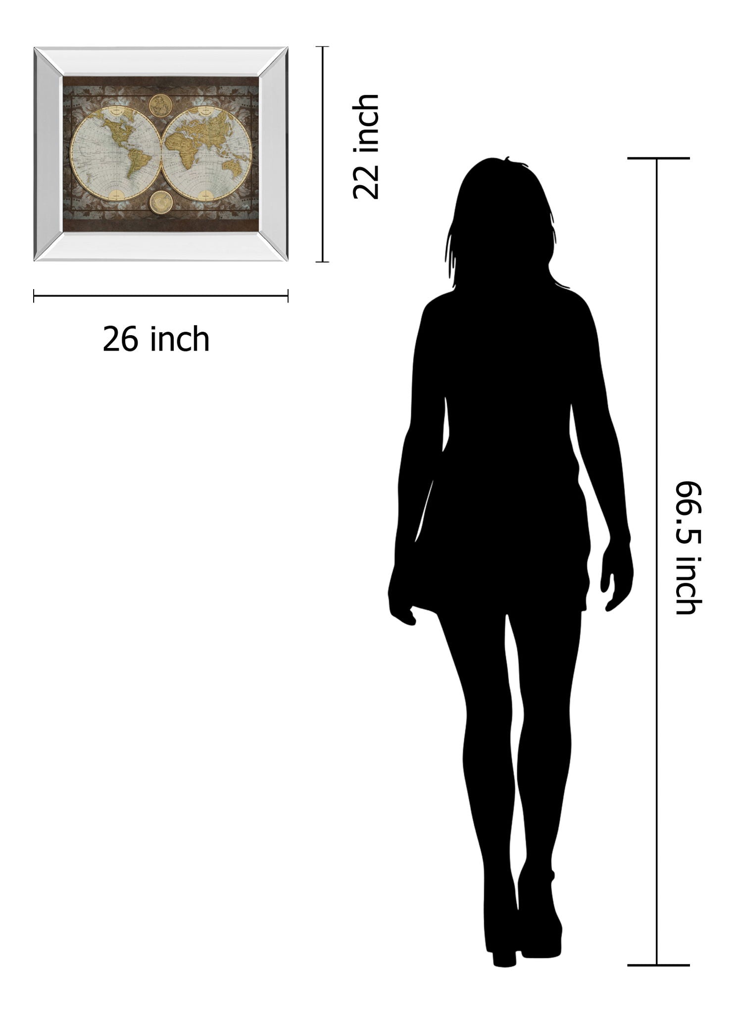 Step into a world where history meets elegance with this vintage globe wall art. Encased in a sleek mirrored frame, the detailed map showcases warm earth tones and intricate geographic lines that evoke a sense of timeless exploration. Perfectly suited for a living room, office, or study, this piece is protected by premium real glass and crafted with expert care, ready to enhance any space with its industrial charm and sophisticated depth.